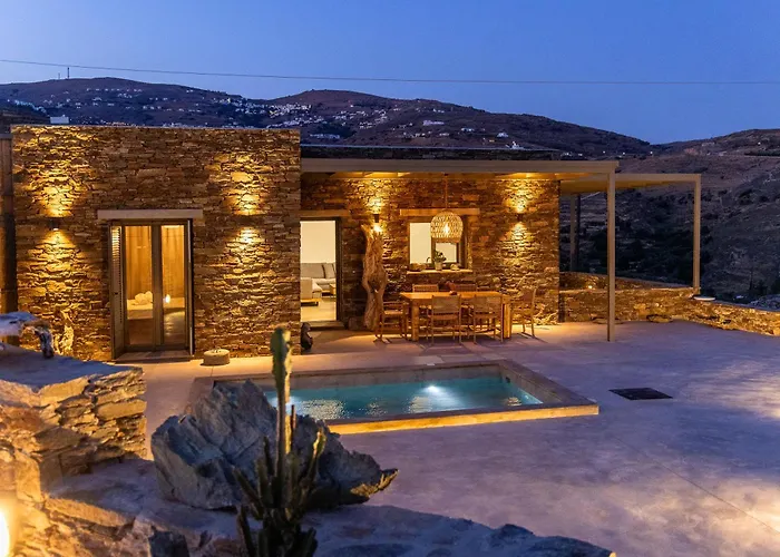 Esta villa se encuentra a una distancia de 2 km del Museo Arqueológico de Tenos. Situados a a poco más de 10 minutos en coche de la Iglesia de Nuestra Señora de Tenos, la villa se encuentra también a poco más de 15 minutos en coche de lugares culturales como el Museo Kostas Tsoklis.